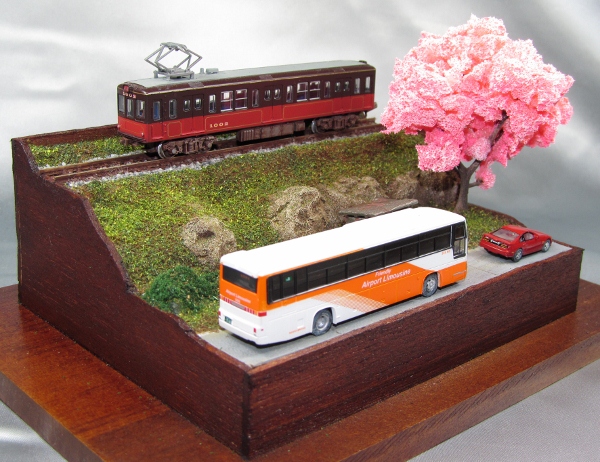 人形やバス・車・柵・架線柱などを設置するだけで、簡単にオリジナルのジオラマを作成できます。